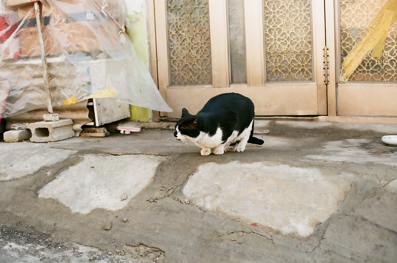 달동네의 길고양이. 날 빤히 쳐다보고 있었는데 카메라를 들이대니 고개를 돌려버렸다. 사람에 대한 경계심이 없어 보였다. 우리 동네 고양이는 도망가기 바쁘던데. 넌 동네 주민들이 잘 챙겨주나보구나.