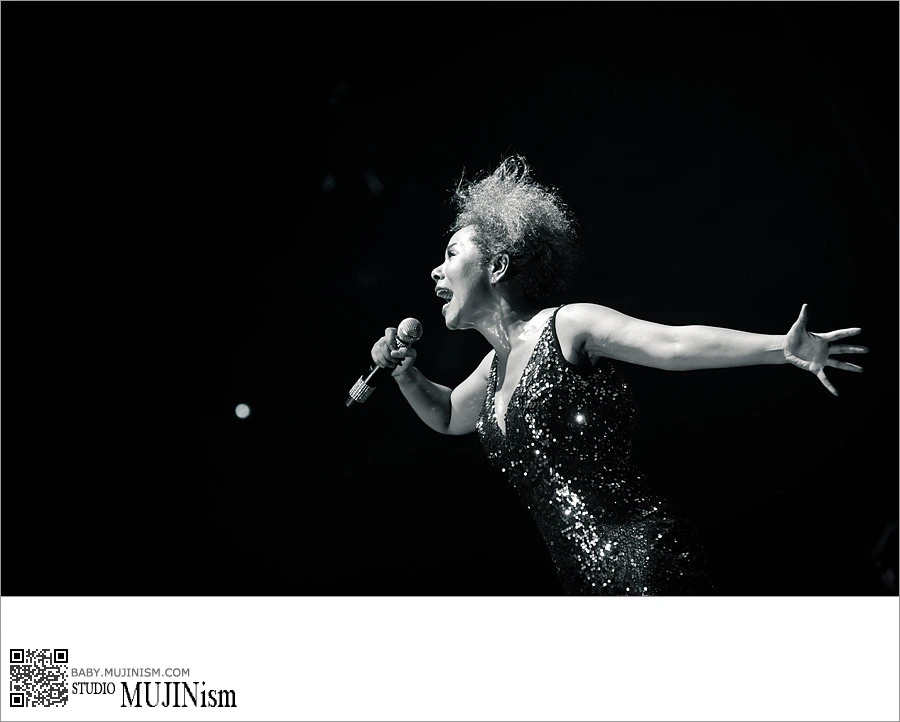 마지막으로 위와 아래의 사진은 인순이 씨의 촬영이었습니다. 인순이씨의 아이컨택이 아직도 기억에 남습니다. 이날은 "나는 가수다" 촬영 이후의 대중 앞에서의 작은 공연이었는데, 많은 카메라 중에서도 계속 눈을 마주쳐 주시던 게 기억이 나네요. - 이 촬영은 의뢰받은 촬영은 아니었습니다. 팬으로 촬영하고 있었는데 아이 컨택이 꽤 되었었지요. (글쎄요, 이것은 착각이었을지도 모르겠습니다.) 렌즈 넘어의 피사체와 파인더 넘어의 사진가의 공감대가 있었던 시간이었다고 생각합니다.