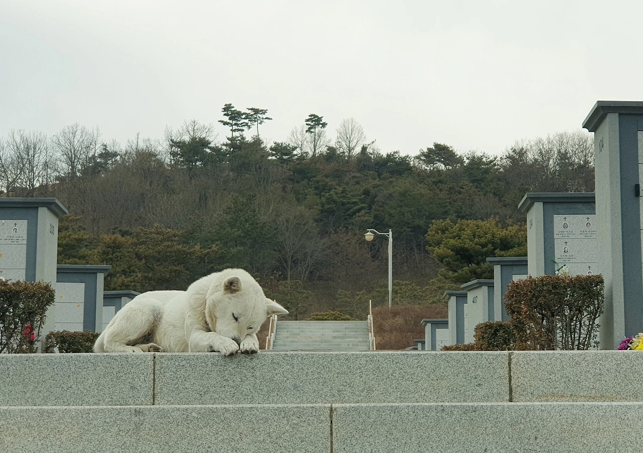 묘원 입구에 분명 '개 출입을 금합니다.'라는 문구가 있지만 전혀 이질적이지 않게 그들은 이미 이곳 식구들이다.