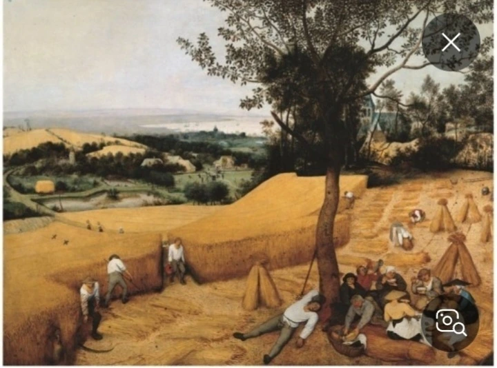 '추수하는 사람들'이라는 그림은 귀족의 저택을 장식한 그림이라고 한다. 귀족에게 소박한 삶의 형태를 충족하고픈 욕망을 채워 주었을 것이다. 나는 이 그림에서 평안을 찾는다. 이제는 현실에서 만날 수 없는 광경이기 때문이다. 고된 노동의 열매와 찌개미를 먹고 자라난 나는, 이제야 그럴 만 해졌다.