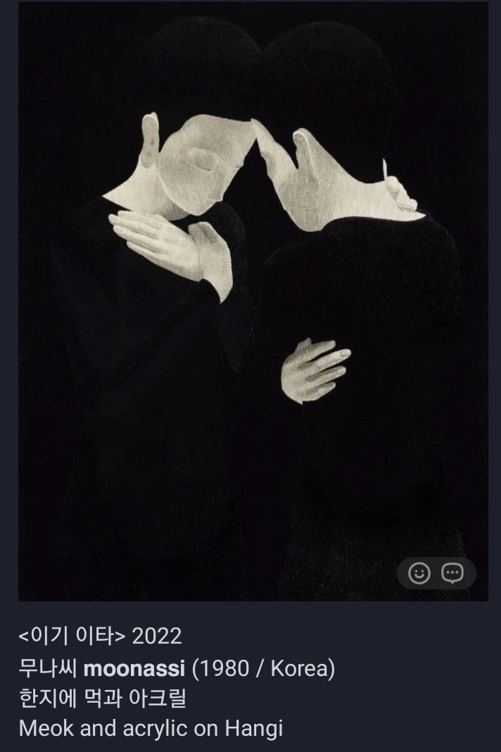 이마를 맞대고 스스로를 껴안고 있거나 가슴에 손을 살포시 얹은 모습을 본다. 서로에게 손을 내밀어 다독여 주는 듯 보였던 그림을, 가만 들여다보니, 각자 스스로를 보듬고 있는 모습이 보였다.