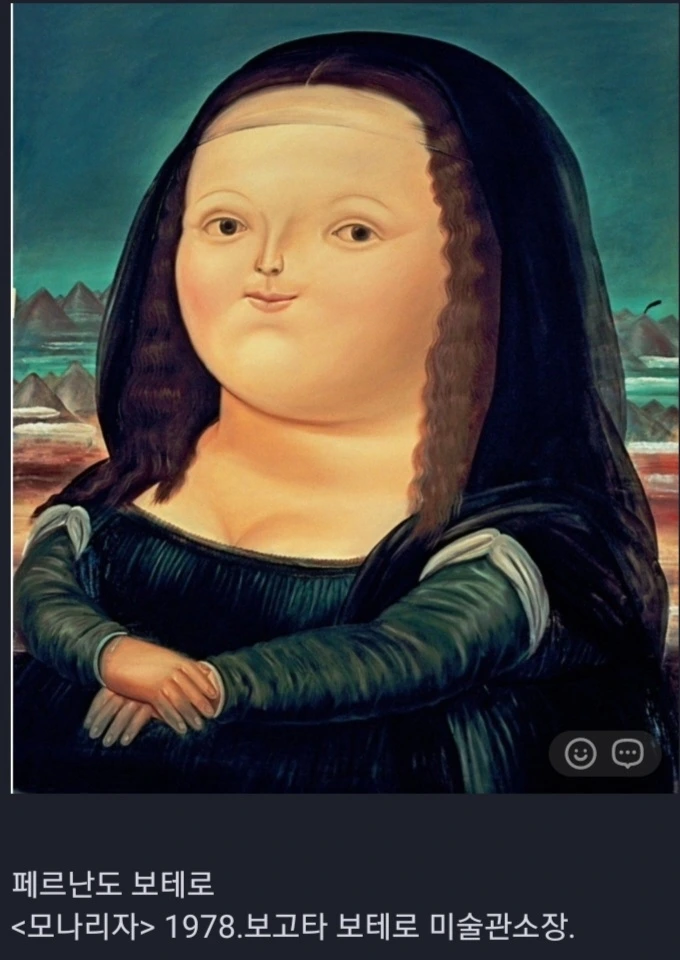 오묘한 미소를 가진 여인이 명랑한 딸을 낳았다. 레오나르드 다빈치의 모나리자는 보면 볼수록 생각에 빠지게 된다. 진정 웃고 있는 것인지, 그 의도가 무엇인지 짐작하려 애쓰게 되고, 남자인지 여자인지 헛갈리기도 한다. 반면, 보테르의 모나리자는 간결하다. 웃음이 보인다.