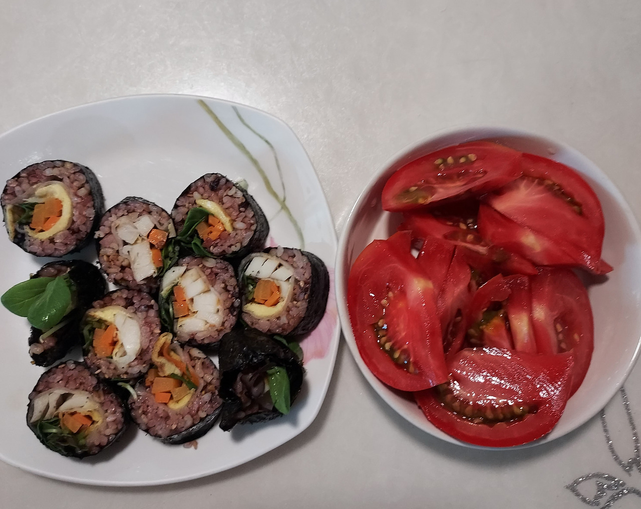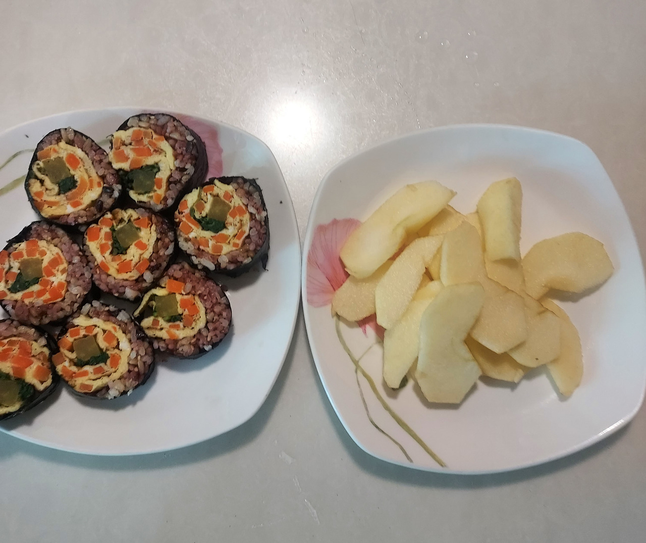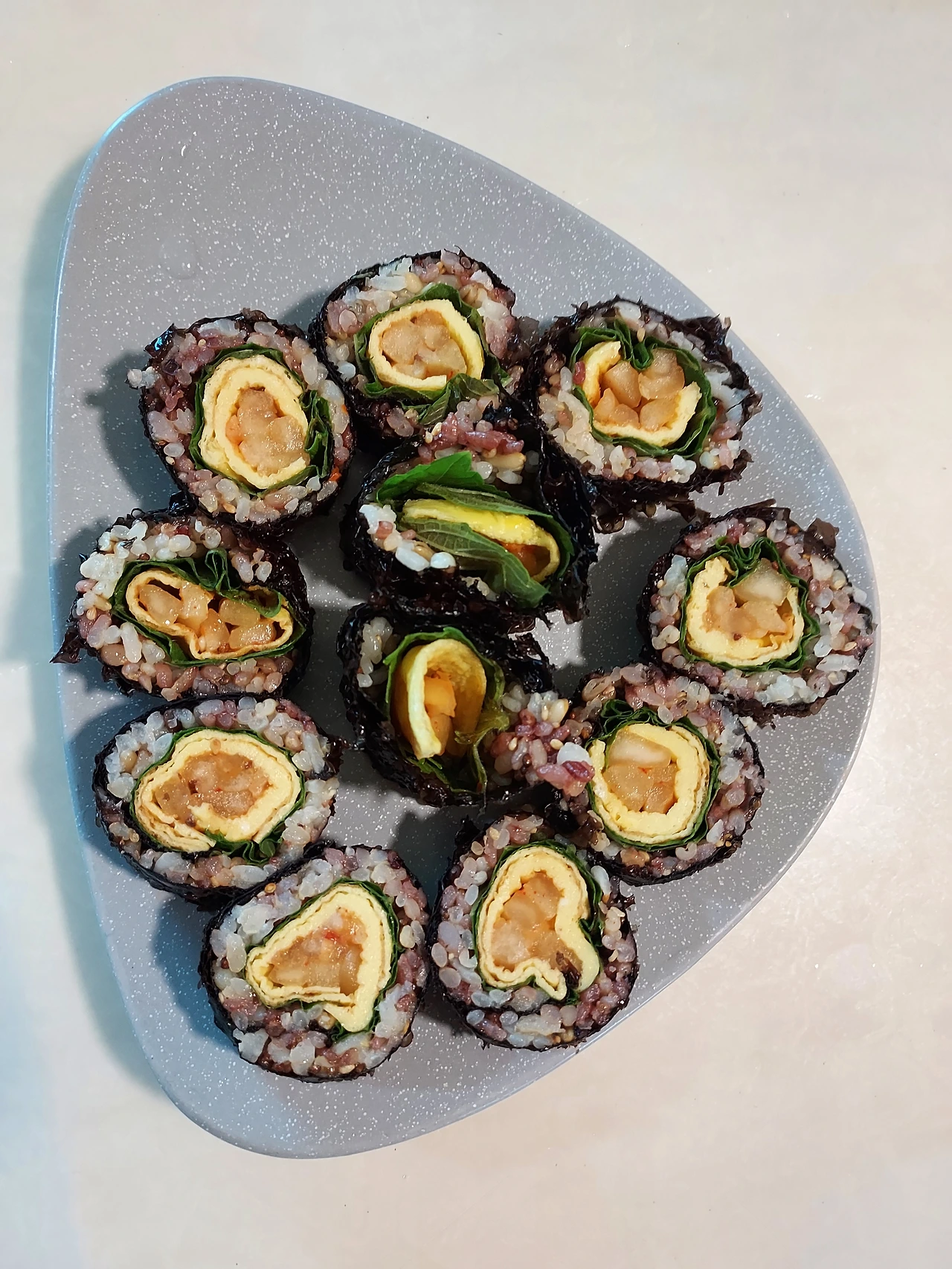 간혹 접시가 깔끔하게 비워진 날은 내 뱃속이 든든하다. 새 모이만큼 먹는 아침밥을 시간이 없어 못 먹는 날은 점심시간까지 배가 너무 고프다고 한다. 김밥 세알에도 하루를 굴릴 만큼의 힘이 있나 보다. 김밥은 힘이 세다.