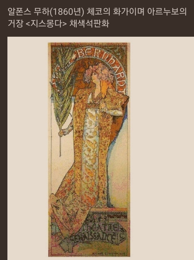알폰스 무하의 그림 속 여인들은 신화 속 여신들 같기도 하고, 순정만화 속 주인공들 같기도 하다. 여인의 극대화된 아름다움은 여백이 있는 곡선으로 표현되었다. 당대 최고의 장식 미술가였던 알폰소 무하의 포스터를 보면서 예술이란