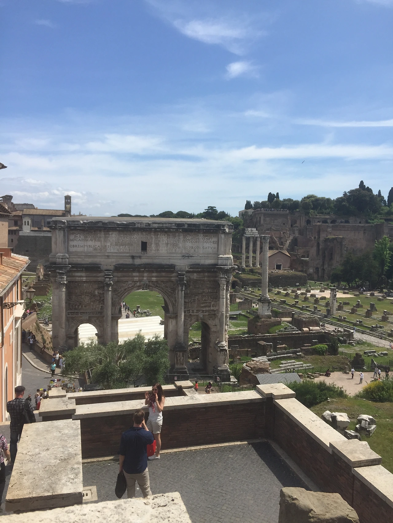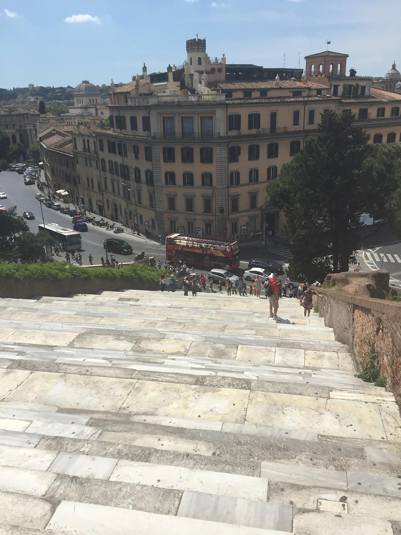 다음으로 눈길을 끈 곳은 캄피톨리오 언덕입니다. 언덕으로 이어지는 계단이 왠지 모르게 널찍합니다. 아하, 말이나 마차를 타고서 언덕을 오르내릴 수 있도록 계단 간격을 널찍하게 미켈란젤로가 설계 한 계단이라고 합니다. 사람이 오르기에는 뭔가 수월한 듯 불편한 이 계단을 올라 캄피톨리오 언덕에서 내려다보면 아래 사진과 같이 고대 로마의 흔적이 남아있는 포로로마노가 펼쳐집니다. 이곳을 지나쳐 걸어가며 우리는 한창이던 시절의 로마는 어떤 모습이었을까 하고 상상도 해보고, 무너져 내려 기둥만 남은 이 모습도 이렇게 웅장한데 그 시대 온전한 건물을 바라보던 사람들은 어떤 생각을 했을까 하고도 생각해 봅니다.