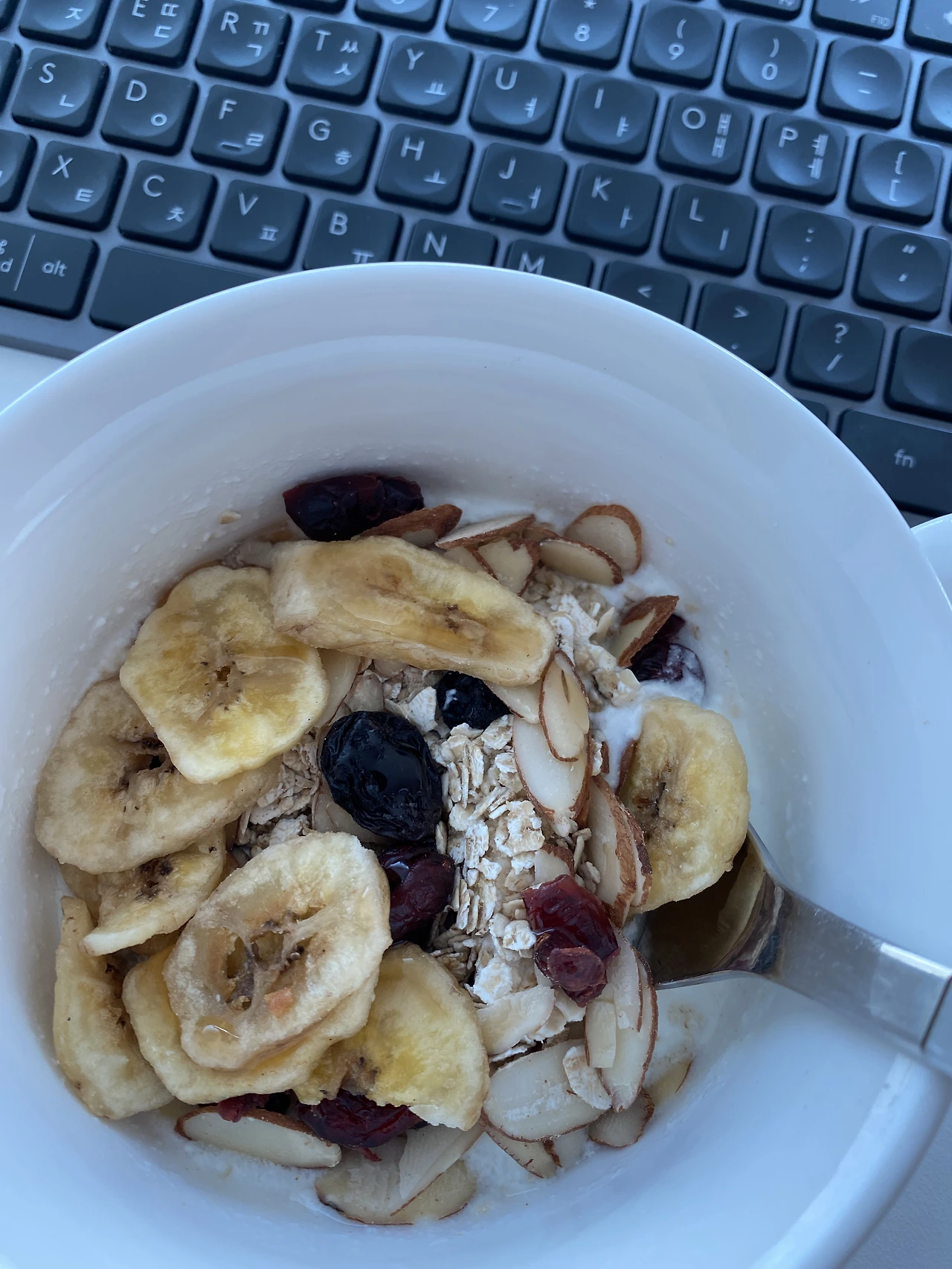 이렇게 만들어 놓은 요거트에 주말이면 구워놓는 그래놀라 한 줌과 딸기잼이나 메이플 시럽을 올려서 먹으면 든든한 아침식사가 된다. 가끔 바나나를 올리기도 하는데 더욱 속이 든든해진다. 재택근무라 아침을 거르기 일쑤인데 요즘은 아침을 꼭 챙겨 먹게 된다.