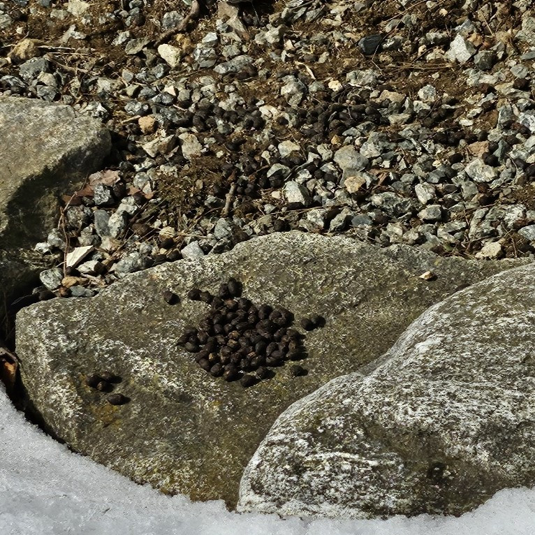 (왼쪽) 하얀 털뭉치를 엉덩이에 달고 있는 노루 (오른쪽) 처마 밑 고라니 똥 겨우내 눈이 녹지 않으면서 집은 고라니와 노루의 똥자리가 되었습니다. 눈을 피해 처마 밑으로 들어온 차에 일을 본 것인지, 똥 눌 자리를 찾아 처마 밑까지 온 것인지 알 수 없지만 처마 밑은 온통 똥밭입니다. 전에 없던 일입니다. 발 디딜 곳 없는 똥 무더기를 보며 올 농사 거름 걱정은 안 해도 되겠다는 생각이 실없게 듭니다. 치우자니 콩알만 한 똥을 일일이 긁어모으는 게 보통 번거로운 일이 아니고 그냥 두자니 구린내와 너저분해 보인다는 낭패감이 교차합니다. 사방팔방 눈밭이라 당장은 치울 수도 없습니다. 눈이 녹은 뒤라야 뭐라도 할 수 있습니다.