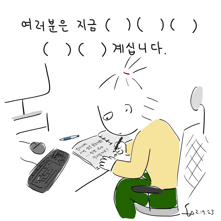 어떻게 어떻게든 어찌어찌 어쩌자고 어쩔 거냐며 어화야 둥둥 쓰고 있습니다.
