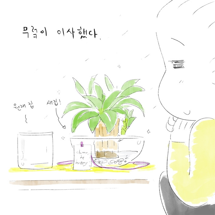 무렄이는 친구가 내가 만든 애니메이션 속 나무와 닮았다고 선물로 보내준 행운목이었다.