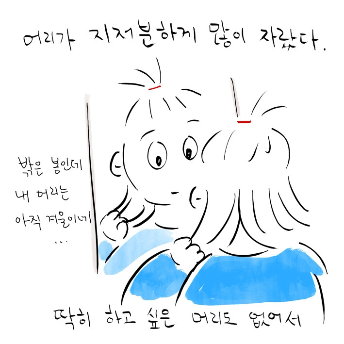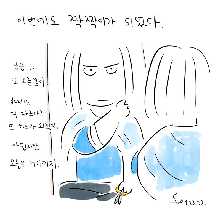 작년 여름 길이 맞추기에 무한도전을 하다 바리깡을 사야 하나 고민이 들 정도로 짧은 커트를 만들어버린 게 엊그제 같은데 어느새 또 머리는 쑥쑥 자라 단발을 쳤다.