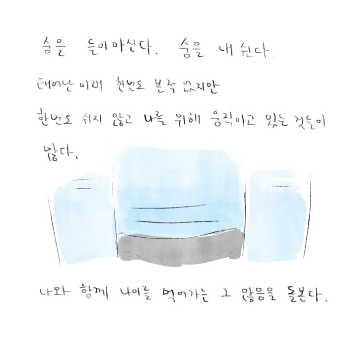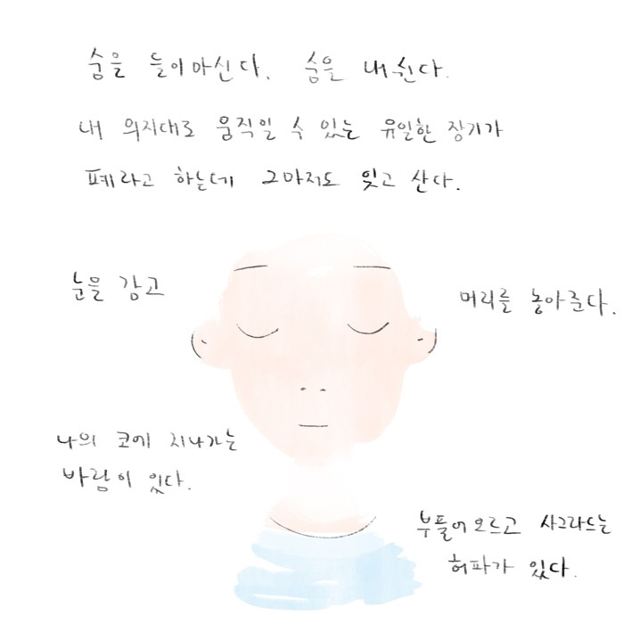 언제나 서투르고 미욱하던 나였지만 지금까지 함께 해줘서 고마워 들숨,