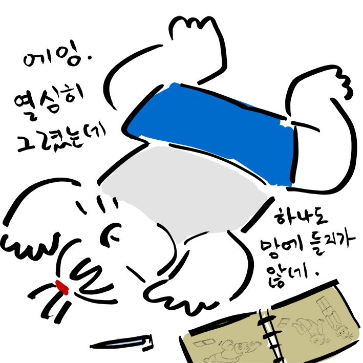 당연히 기계가 아닌 사람인지라 그림이 잘 그려지는 날도 있고 안 그려지는 날도 있는데 굳이 잘 못 그리는 날이면 ‘과거의 나’를 불러와 이유를 묻고 야단을 친다.