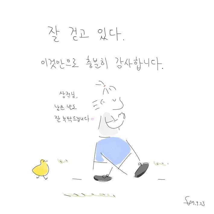 내가 자포자기를 했던 순간에도 포기하지 않으셨던 상전님은 언제나 묵묵히 할 일을 하며 나아가고 계신다.