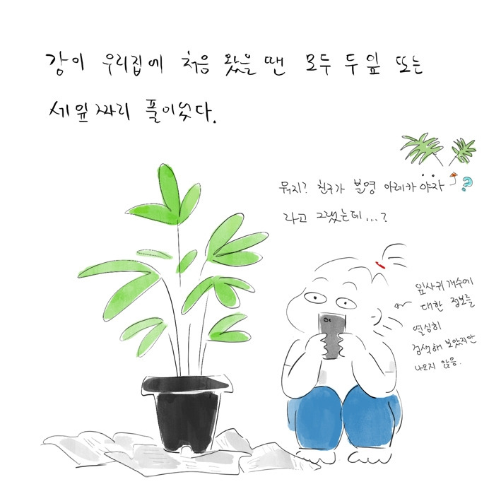 *강이는 열네 장짜리 잎도 내고 무럭무럭 잘 자라고 있습니다. :)