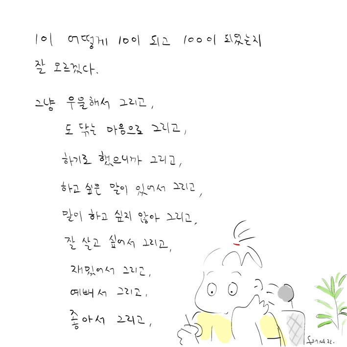이 이도저도 아닌 일이 어디에든 맺히길 바라는 마음에 숫자를 붙이기 시작했다.