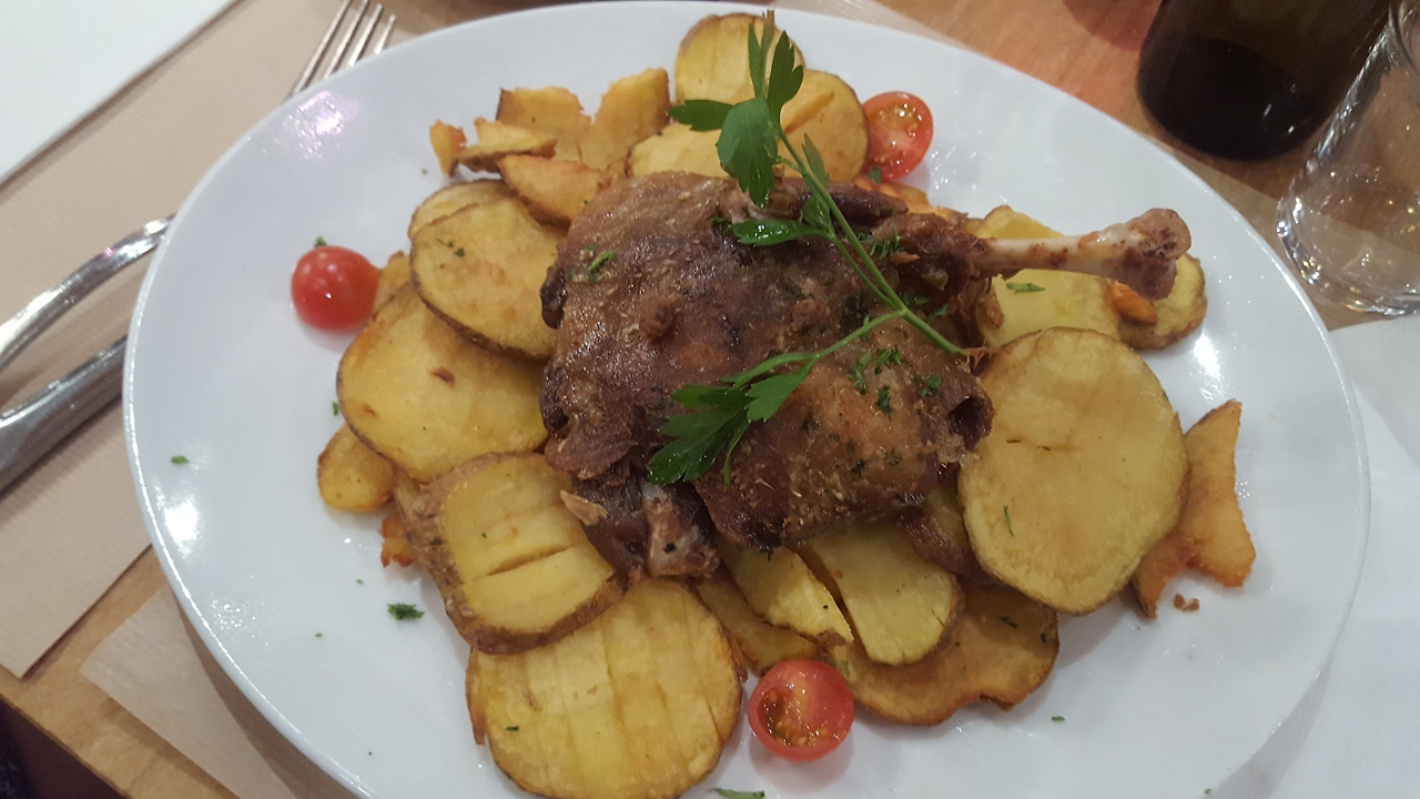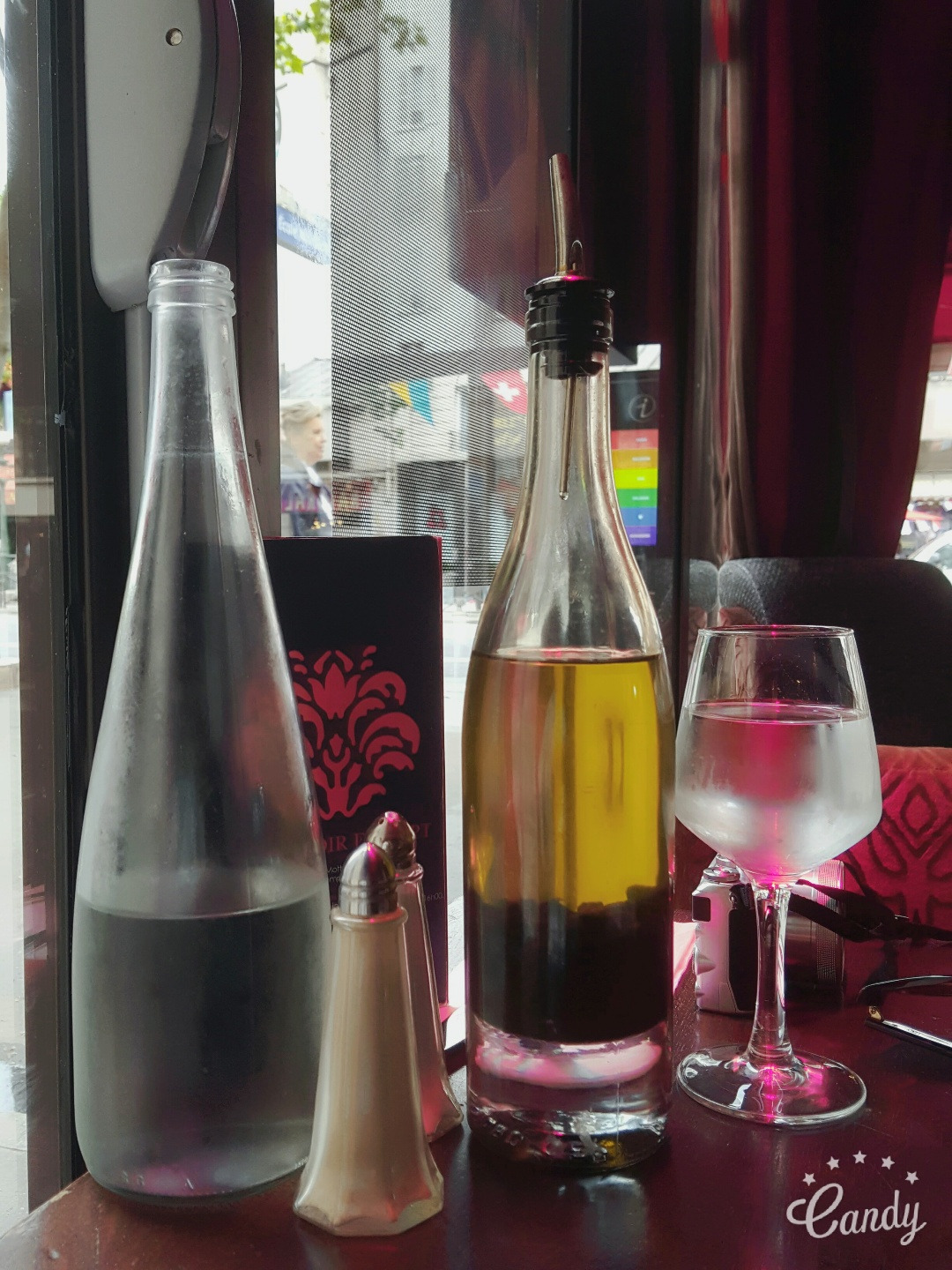 올리브 오일이 담긴 큰 병과 투박한 듯한 기본 세팅이 마음에 들었다(좌), 점심을 먹은 식당(우)