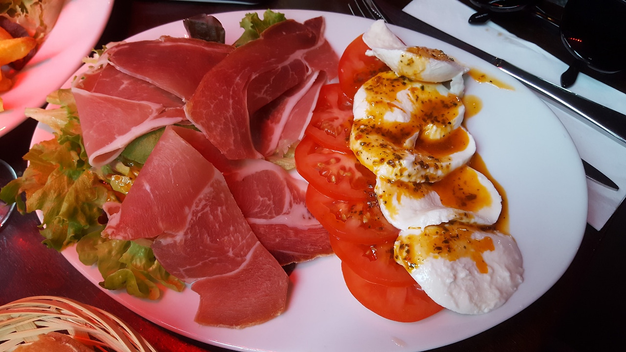 이탈리안 샐러드, 프레시 모차렐라 맛이 아주 기가 막혔다(좌), 로스트 치킨(우)