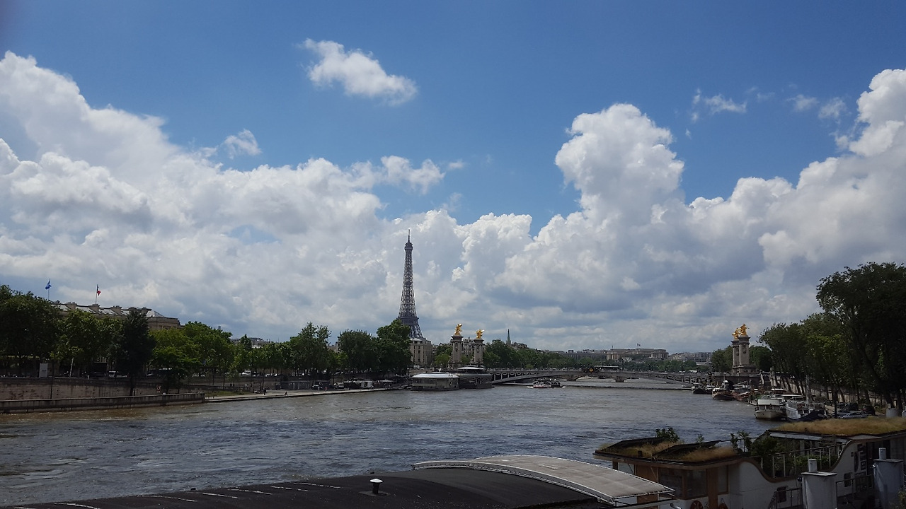 세느강은 적당한 거리를 두고 보아야 더 아름답다. 그 가운데 금빛 장식이 돋보이는 '알렉상드르 3세 다리'