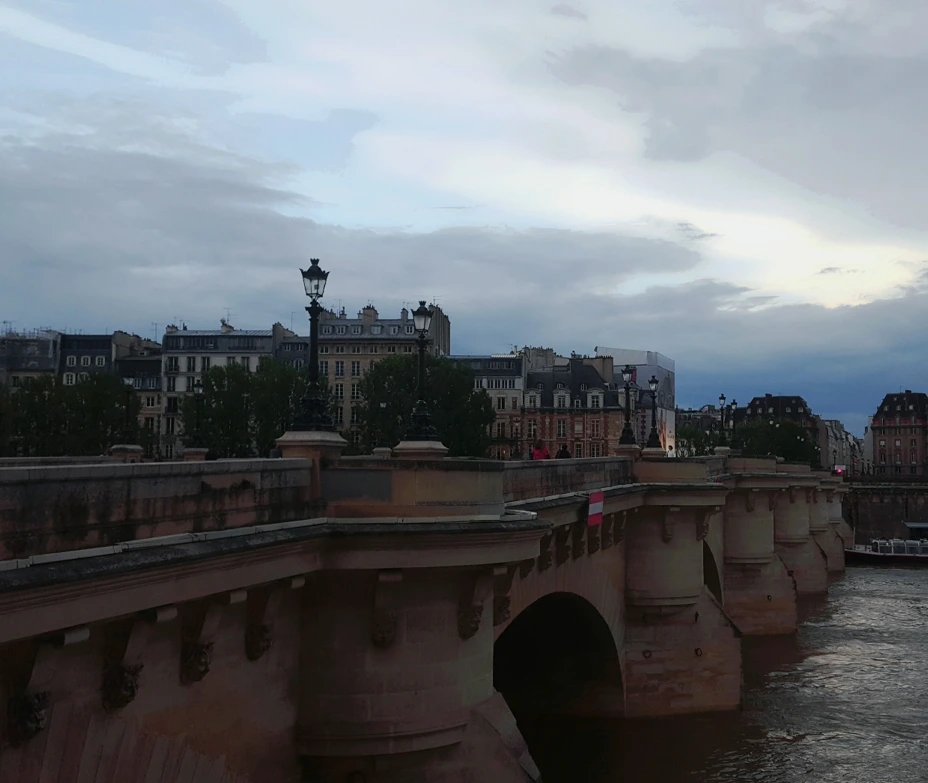 노트르담 대성당, 화재로 사진 속의 첨탑이 무너져 내릴 때 너무 마음이 아팠다..(좌), 퐁뇌프 다리(우) 이제야 좀 해가 지기 시작한다