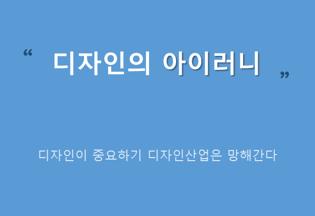 우리나라 디자인진흥원은 영국의 디자인카운실이라는 기관을 벤치마킹해서 만들어졌다. 한동안 창의적 디자인을 국가가 주도한다는 것이 어떤 의미인가 싶었지만, 이제는 명확히 알 수 있게 됐다. 디자인이란 무형의 지식자산으로 그 가치를 정의하고, 평가하기 애매하다. 그래서 국가가 나서서 키우지 않으면 누구도 그 가치를 알 수 없고, 지킬 수 없다. 이대로 둔다면 머지않아서 대한민국의 산업경쟁력은 원인 모를 병에 걸린 것처럼 서서히 죽어갈 수밖에 없다. 그렇게 때문에 디자인산업은 단순히 시장의 논리에만 맡기면 안 된다. 이것이 국가의 정책적 차원에서 디자인산업을 지원해야 하는 이유인 것이다.