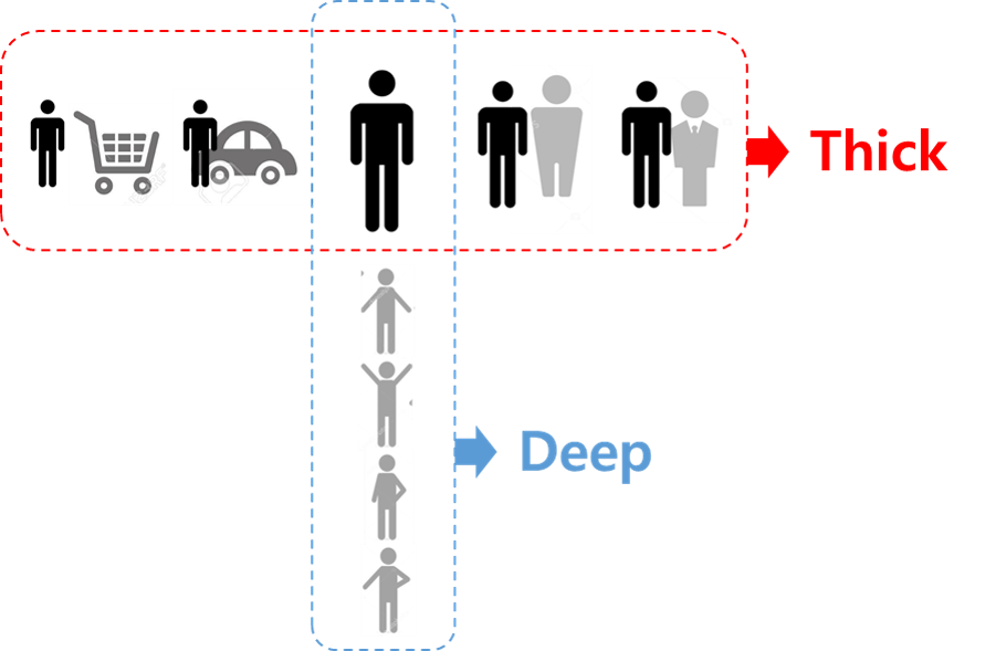 '사람과 사람', '사람과 사물'간에 관계와 상호작용이 강한 경우에서 발생하는 데이터들은 과거의 수 많은 데이터들을 분석해서 예측하는 것보다는 현재의 관계와 상호작용을 깊이있게 들여다보는 thickdata적 접근으로 데이터를 수집, 분석, 가공하는 것이 더 효과적이다.