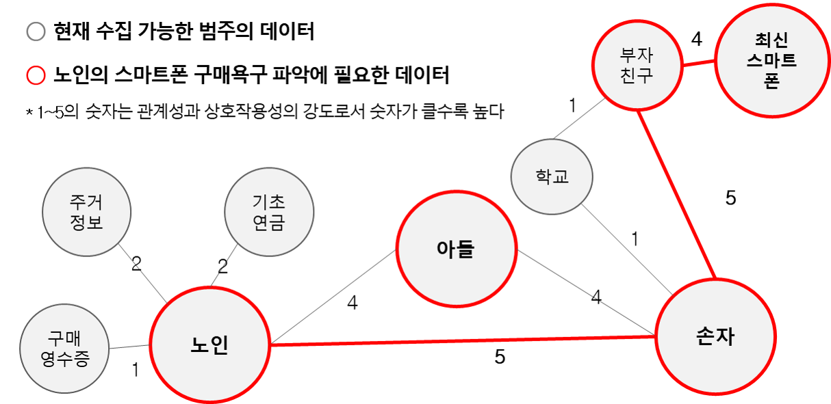 결론적으로 기존 빅데이터 모집단에 들어오지 못했던 데이터의 범주가 있었고, 그 데이터의 성격은 발생시에 '사람'대 '사람' 또는 '사람'대 '사물'간의 관계(relationship)와 상호작용(interaction)이 강한 상태에서 발생하는 데이터들로서 일반적 방식으로 수집하여 패턴화가 어려운 소규모의 한정적 데이터인 경우가 많았다.