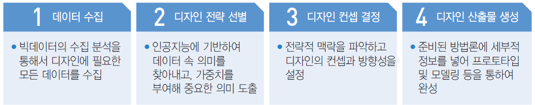 인공지능 기반의 로봇이 디자이너의 심미적 역량과 직 관련을 유지하면서, 컴퓨터 알고리즘을 이용하여 자동으로 만들어지는 디자인 프로세스와 관련한 산출물로써, 디자인의 리서치, 기획, 제작에 관한 다양한 빅데이터의 분석을 통해서 인공지능 기반의 기계학습이 발전하면서, 기존 디자이너가 하는 디자인 업무를 대체할 수 있을 정도로 발전할 것이라는 개념