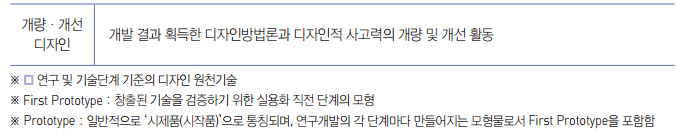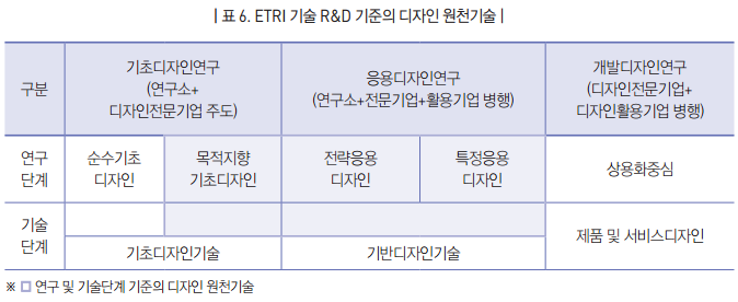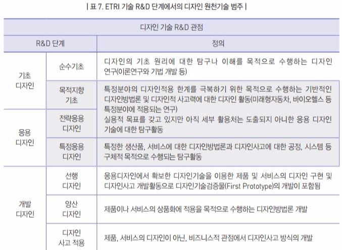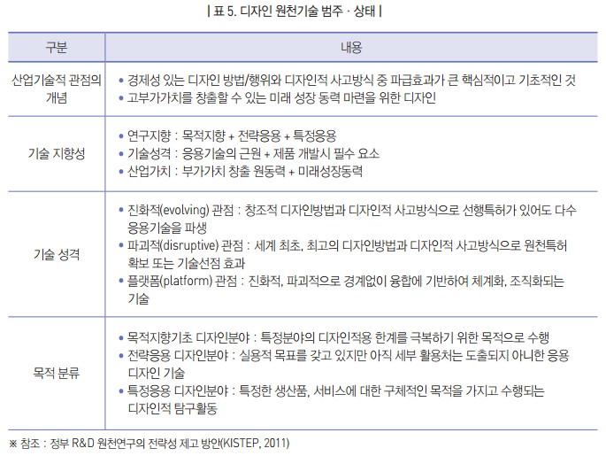 o 디자인 원천기술 범주에는 목적지향기초디자인, 전략응용디자인, 특정응용디자인을 포함함.