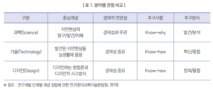 o 아직은 잠재성이 명확하지 않지만, 디자인은 4차산업혁명 소프트파워의 원천으로서 기반 기술적 노하우의 축적과 연구가 필요한 분야이기에 기술로서 연구할 가치가 존재함.