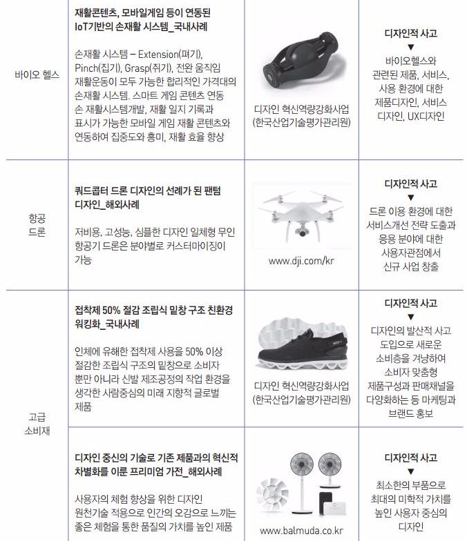o 디자인은 혁신적인 제품이나 서비스를 개발하는 데 필수적인 독창적인 기술로서 다수의 새로운 산업과 서비스를 파생시킬 수 있는 기술로서 부각됨.