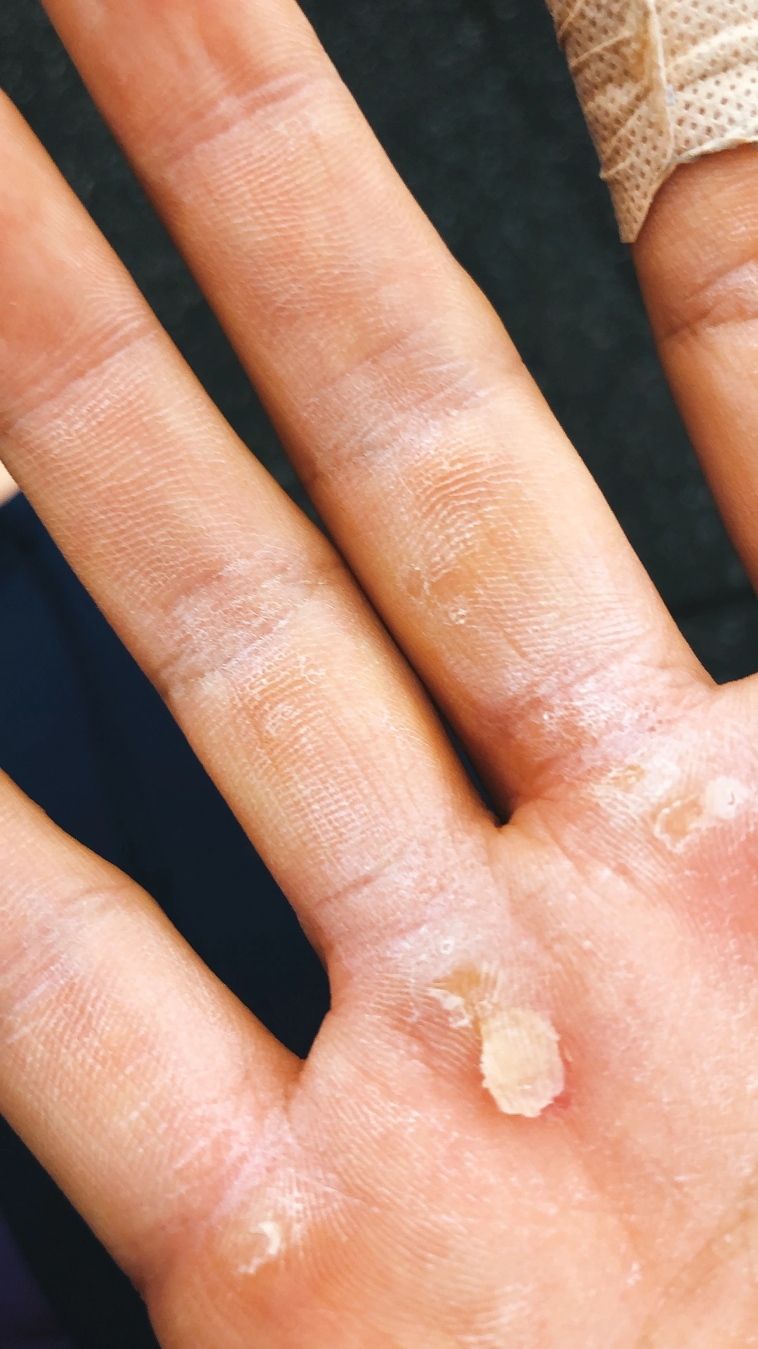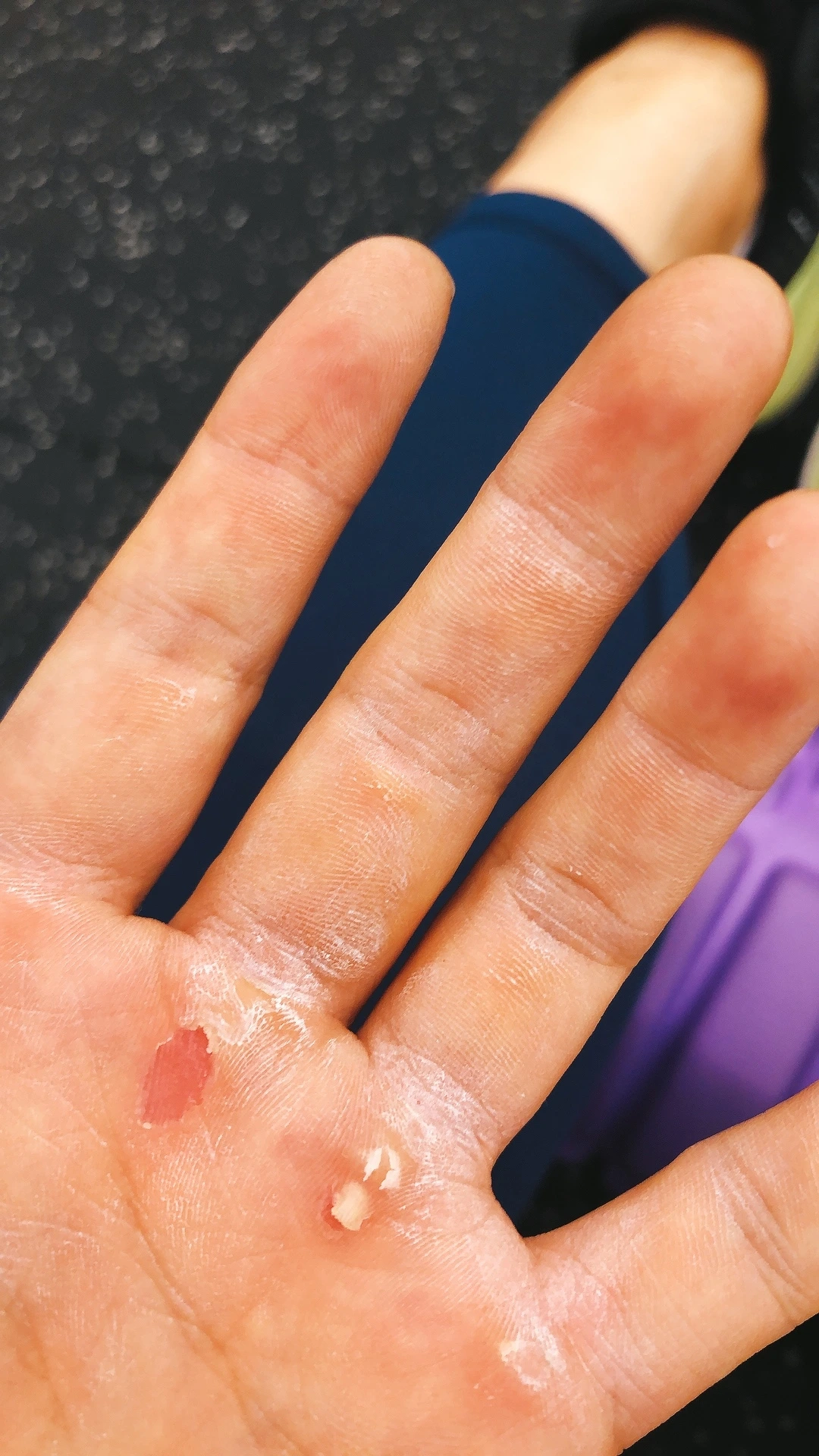 굳은살이 까지는 고통은 말로 다 표현할 수 없다. 살이 벗겨진 곳엔 아직 새빨간 속살이 있다. 자연적으로 교체된 살이 아니라 마찰로 인해 벗겨진 것이라 보호받지 못한 살은 완전 무방비 상태다. 연약한 살은 손바닥을 구부리거나 펼 때조차도 통증을 유발한다. 운동을 한 다음에는 씻어야 하는데 굳은살이 까진 곳에 물이 닿을 때마다 지옥, 악몽, 고통, 두려움 이런 것들이 쓰나미처럼 온다.