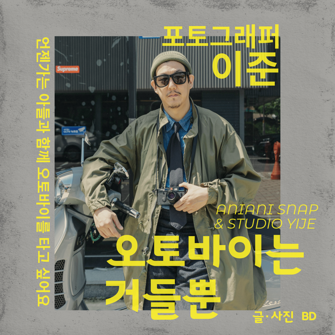 저는 아지트라고 불러요. 사진 작업도 하지만 지인들 불러 편하게 음악도 듣고 술을 마시기도 하거든요. 오토바이 경정비를 할 때도 있어요. 대전에는 베스파를 믿고 맡길만한 곳이 거의 없거든요. 규정 토크 값도 지키지 않고 볼트를 잠그는 경우가 허다하다 보니 '그냥 내가 해야겠다.'라는 생각에 시작하게 됐어요.