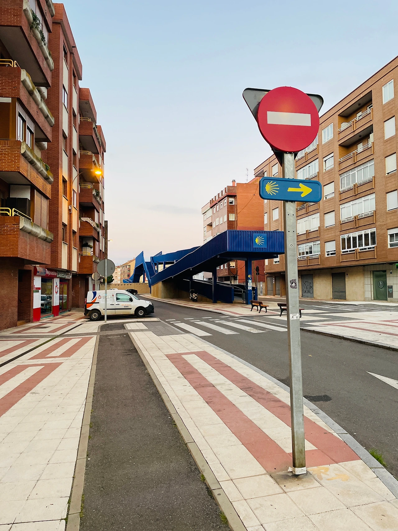 해가 뜨기 전 새벽 레온 성당의 종소리를 들으며 알베르게를 나왔다. 10년 전에 큰 마음먹고 산 오래 노란색 등산화를 신고 얼마 전에 당근에서 산 파란색 배낭을 멨다. 의도하지 않았지만, 나는 산티아고 순례길 룩까지 완벽하게 갖췄다. 산티아고 순례길에서는 파란색 파탕 위 노란색 화살표를 보고 걷는다.