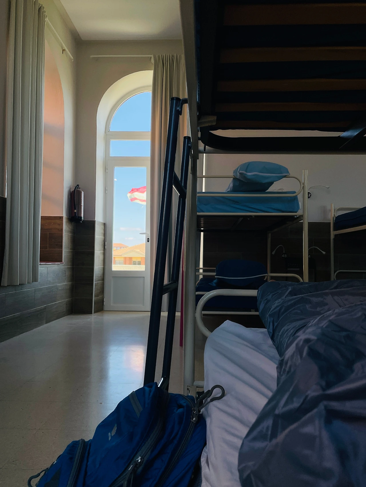 교실처럼 큰 방에 끝도 없이 2층 침대가 늘어져 있다. 화장실과 샤워실은 공용. 아침을 먹을 수 있는 작지만 깔끔한 주방도 있다. 24인실 도미토리 47번 베드 오늘 내 방이다. 이른 시간에 도착해서 인지 순례자가 별로 없어 우리에겐 좋은 자리를 선택할 수 있는 특권이 주어졌다.