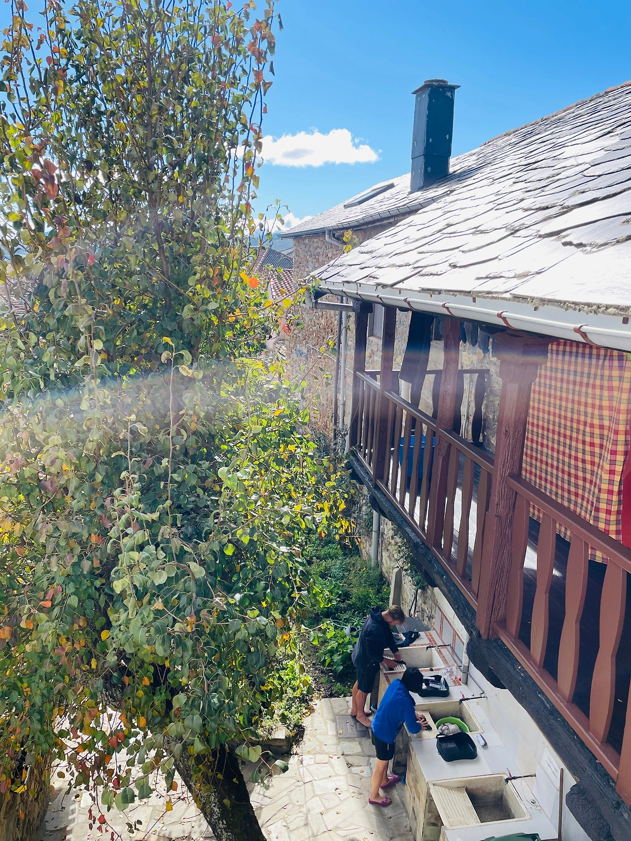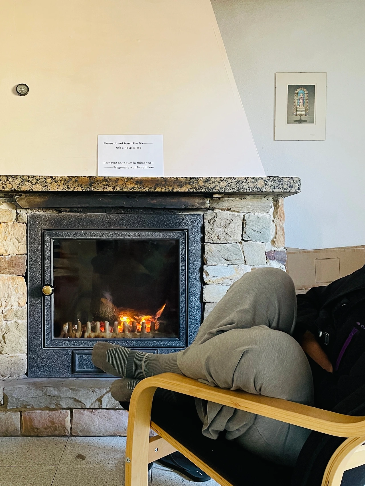 어젯밤에 고심해서 고른 알베르게에 도착했다. 대부분의 건물이 그렇지만 돌로 만들어진 이 알베르게가 마음에 쏙 들었다. 빨래를 널 수 있는 넓은 안마당이 있고, 분위기 있는 벽난로가 있는 지하 살롱도 갖춰져 있는 알베르게다.