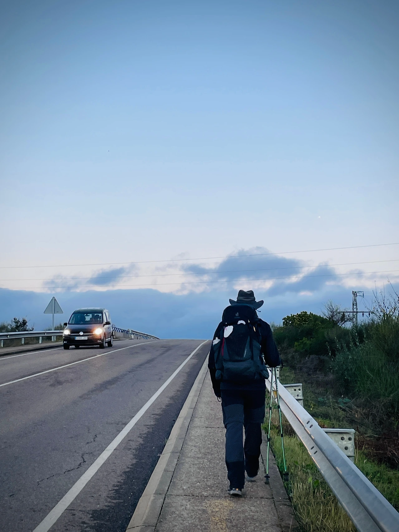 '카우보이 햇'을 쓴 멋쟁이 아저씨가 내 앞에 가고 있다. 오늘 나와 순례잡기를 할 사람이라는 것이 직감한다. 등산 모자 대신 '카우보이 햇'을 쓴 아저씨는 어렸을 적 봤던 서부 영화에나 나올 법한 아우라가 있다.