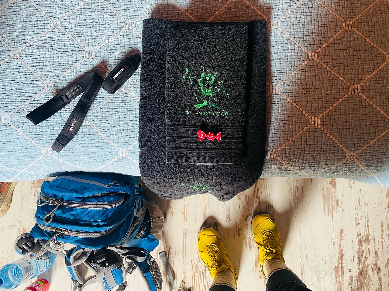 삐그덕 대는 나무 계단을 올라가 방으로 들어갔다. 천창까지 있는 방이다. 침대는 세 개, 침대 위에는 웰컴 사탕과 웰컴 수건이 놓여 있었다. 환영받고 있다는 느낌에 마음까지 따뜻해진다. 오늘은 침대에 이불도 깔려 있어 침낭을 꺼낼 필요가 없다.