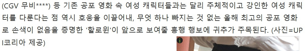[할로윈, 2018]은 현재 북미 성적도 좋을 뿐 아니라 언론과 평론가들 사이에도 호평이 쏟아지고 있다. 이러한 것은 현재 영화 시장과 언론이 보여주는 이중적이면서도 위선적인 작태를 단적으로 보여준다. 올해 여름에 개봉했던 [쥬라기월드 : 폴른 킹덤]을 생각해보자. 원작들에 대한 훌륭한 오마주와 전작보다 훨씬 복잡해진 플롯을 지녔어도 평단의 반응은 생각보다 좋지 않았다. 그러나 [할로윈, 2018]의 상황은 다르다. 외신에서부터 호평 세례의 작품에 대해서는 국내 평론가들은 입을 맞춘 듯 좋은 평만 남기고 있다. 물론 슬래셔 무비의 독실한 팬으로서 [할로윈, 2018]은 나쁘지 않은 작품인 동시에 훌륭한 슬래셔 무비의 귀환을 알렸다는 사실에 부정하고 싶은 생각은 없다. 그러나 사실상 그 이상의 것은 갖추지 못했다. 철 지난 공룡놀이와 싸이코 드라마는 사실상 같은 선상이라고 봐도 무방하다. 그러나 언론에서는 벌써부터 ‘여전사’를 강조하고 나섰다. 이전 작품들에서 나왔던 모든 생존자(여전사)들의 존재는 새까맣게 잊어먹은 듯 ‘최초’, ‘처음’이라는 키워드를 앞세운 채 말이다.