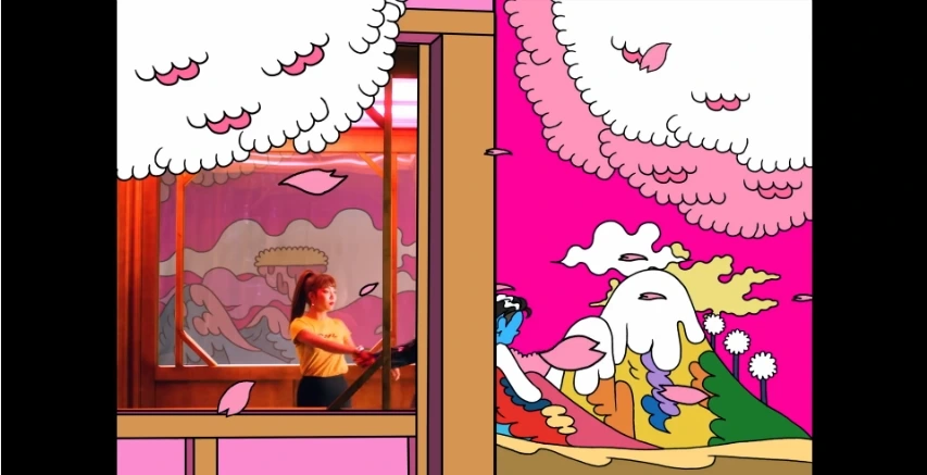 상상의 방에서 나오자 애니메이션으로 가득 찬 세상이 펼쳐진다. 상상의 방 안은, 구체적인 상상(이 사람과 밥도 먹고, 뽀뽀도 하고, 결혼도 하고...)이 이루어지는 공간이었다면 밖은 그렇지 않다.