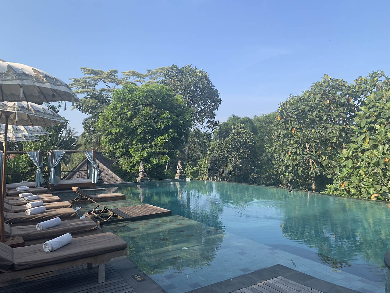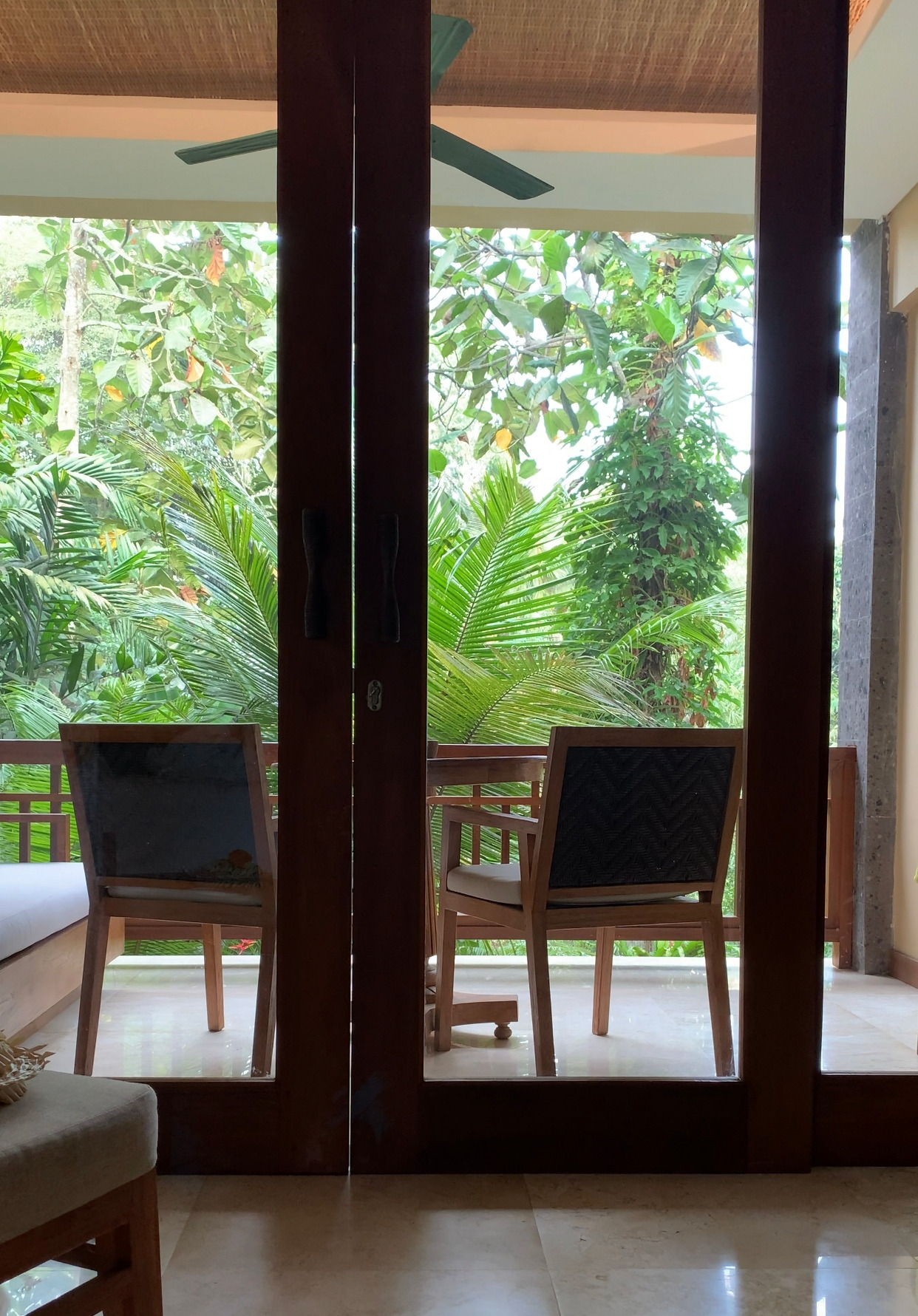 정글 속 리조트에서의 첫날. 눈 끄자마자 커튼을 여니 그림 같은 풍경이 펼쳐졌다. 우아, 이래서 다들 정글 뷰, 정글 뷰 하는구나!