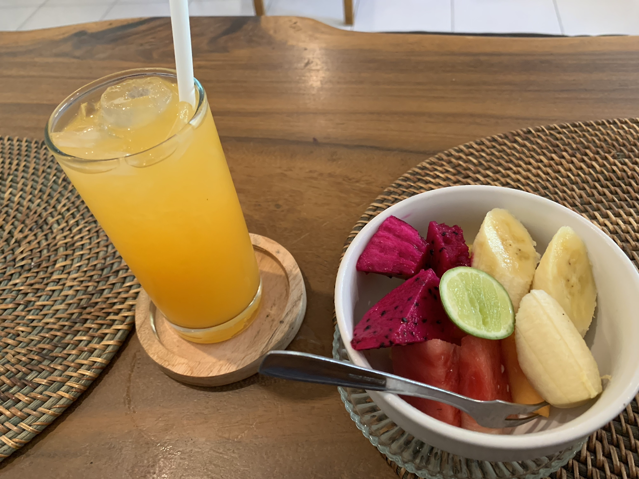 새벽에 도착해서 씻지도 못하고 바로 잠들었다. 깨자마자 샤워하고 나와서 먹은 조식. 바나나 팬케이크인데 따뜻한 바나나가 영 적응 안 되는 맛.