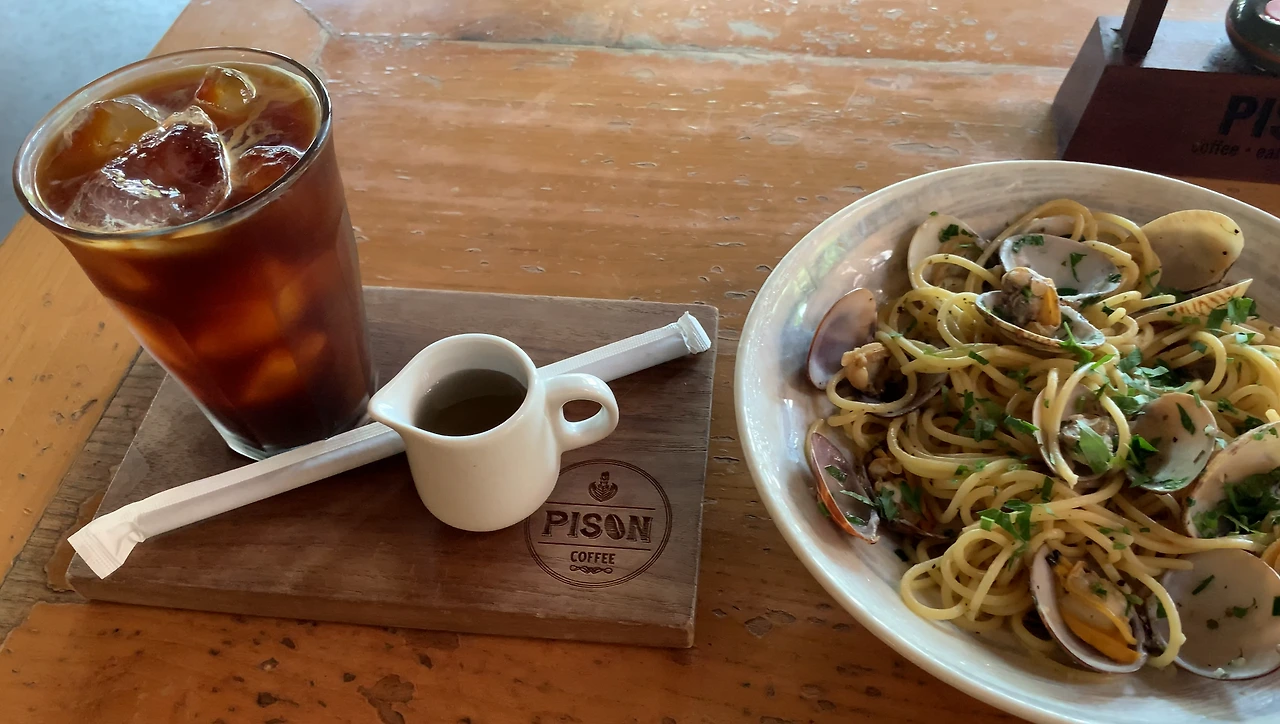 무작정 걷다 보니 피손까지 갔다. 우붓 왕궁에서 피손까지는 거리가 꽤 되는데 지금 생각하면 여행 첫날이라 에너지도 충분했고 거리 구경하느라 힘든 줄도 모르지 않았나 싶다. 그나저나 저 봉골레 정말 맛없음. 발리에서 첫 식사였다.
