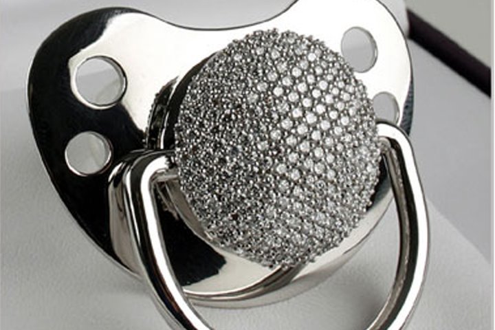 그렇다면 상대적으로 유모차보다 덜 비싼 아기용 젖꼭지는 어떨까요? 한화로 1,700만 원으로 오른 이 젖꼭지는 가장 비싼 유모차보다 비쌉니다. 기네스북에 오를 정도로 신기한 사진이기도 하죠. 촘촘한 다이아몬드가 달려 있어 가격 값을 하는 것 같지만 육아용품이라고 하기엔 상상할 수 없는 가격이네요.