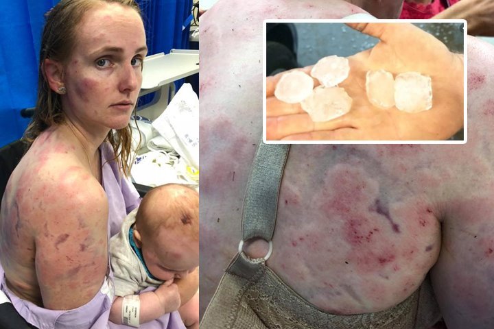 한 엄마의 사진이 온라인에 퍼지면서 사람들에게 큰 감동을 전달했습니다. 호즈 퀸즐랜드주에 거주하고 있는 23세 심슨의 이야기입니다. 작년 호주에는 어마어마한 토네이도가 불어닥쳤는데요. 이로 인해 내리던 비는 우박으로 바뀌면서 하늘에서 쏟아졌죠. 우박의 위력은 대단했습니다. 자동차 창문을 그냥 깰 정도였죠.