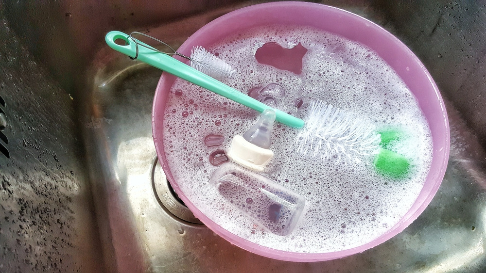 보통 음식을 먹은 후, 빈 그릇은 설거지에 앞서 따뜻한 물에 담궈두는 경우가 많습니다. 음식 잔여물이 굳는 것을 방지하고 설거지를 보다 편하게 하기 위해서인데요. 그렇다면 젖병을 사용한 직 후에도 이렇게 따뜻한 물에 담궈두는 것이 좋을까요? 아닙니다. 젖병은 사용한 직 후, 젖병과 젖꼭지를 분리하여 바로 찬물로 헹궈 세척하는 것이 바람직합니다.