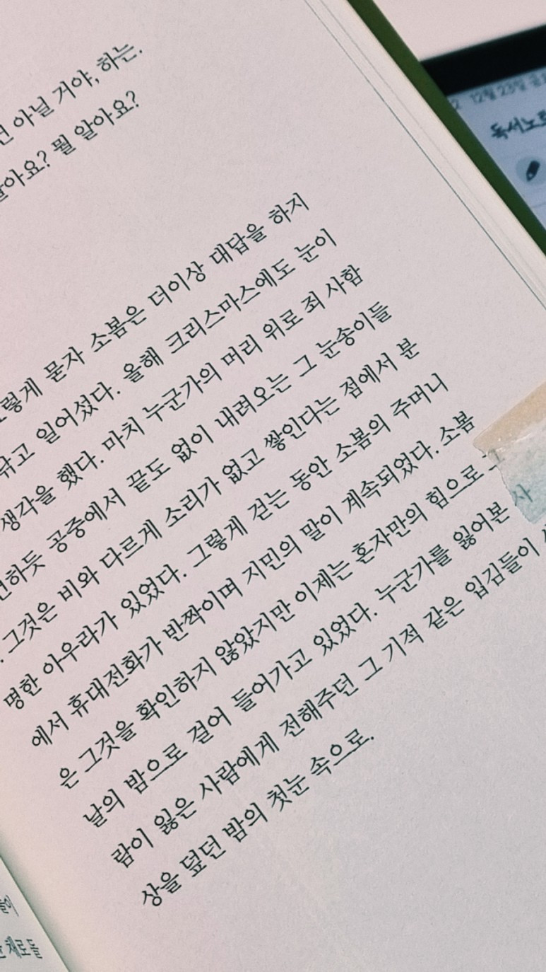 누군가를 잃어본 사람이 잃은 사람에게 전해주던 그 기적 같은 입김들이 세상을 덮던 밤의 첫눈 속으로.