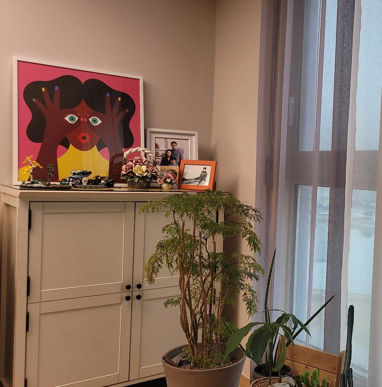 그림을 들인 후, 중딩 아들은 책상에 앉는 자세부터가 달라졌습니다. 구부정하던 자세는 어디로 가고 허리를 곧추 세워 앉았지요. 어미는 지금도 농담인척 아들에게 저분의 존재를 상기시켜 주곤 합니다. 똑같이 저 눈알 강조 포즈를 취하면서말이에요.
