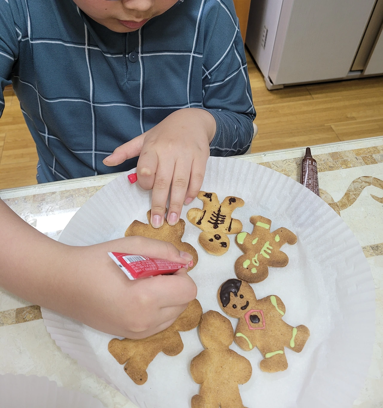 크리스마스이브에는 산타 할아버지를 위한 진저 브레드 맨 쿠키를 만드느라 분주했어요. 물론 아이는 쵸코 펜으로 데코만 했어요. 전적으로 쿠키를 만드는 건 엄마 몫이었습니다. 미니 오븐으로 쿠키 굽기란 정말 번거로운 일이었어요. 한 번에 3개밖에 굽지 못할 정도로 작은 오븐 이었거든요. 반나절은 풀가동으로 돌려야 했습니다. 그래도 아이의 마음이 예쁘고도 기특해 힘든 줄도 모르고 쿠키를 구워댔습니다.