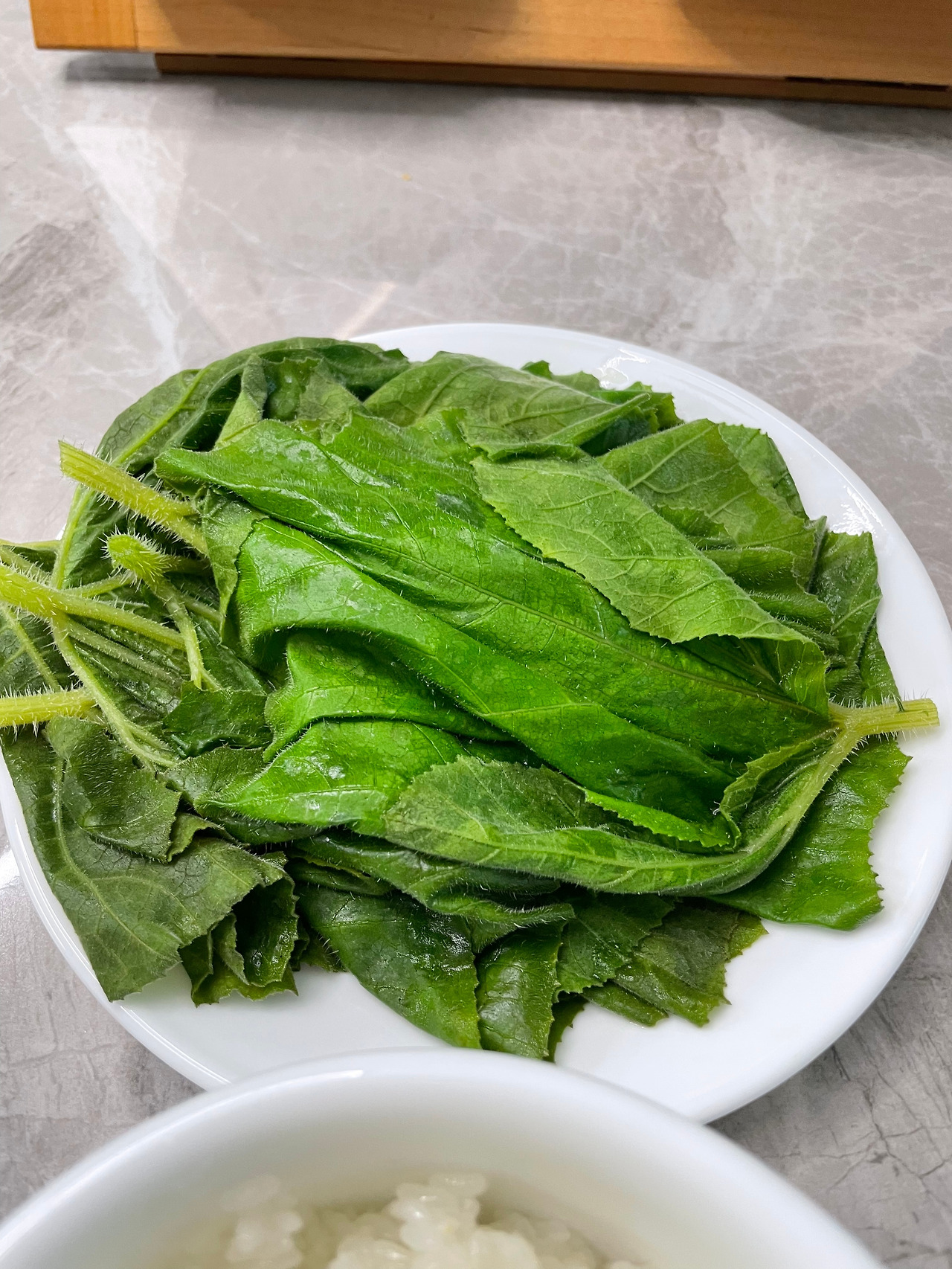 2025년 여름, 드디어 호박잎이 입고되었다. 이른 시간에 발견한 터라 재고는 넉넉하다. 재빨리 장바구니에 담고 다음 날 아침이 되길 기다렸다. 1년 만에 만난 호박잎은 여전히 푸르고 거슬거슬했다. 저 촉감 때문에 줄기 쪽에 있는 막을 벗겨 먹곤 하는데 난 귀찮아서 줄기는 다 잘라버린다(...)