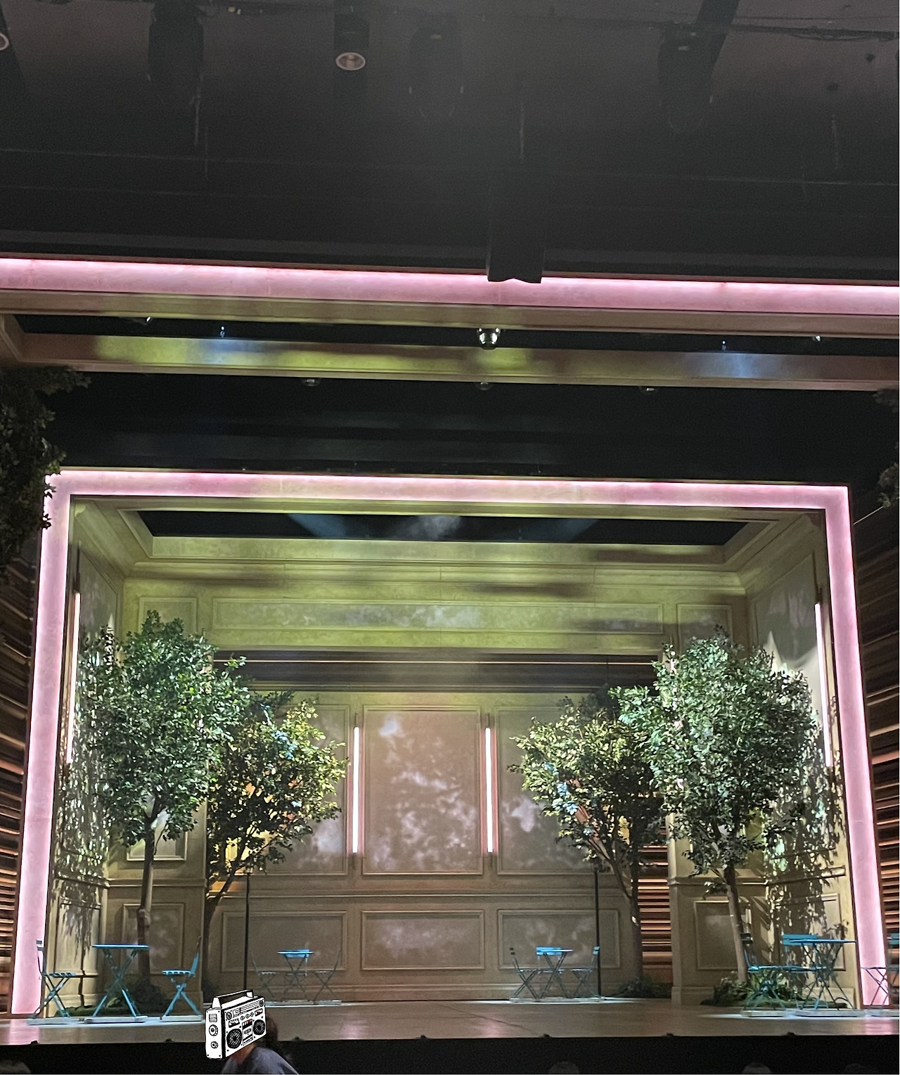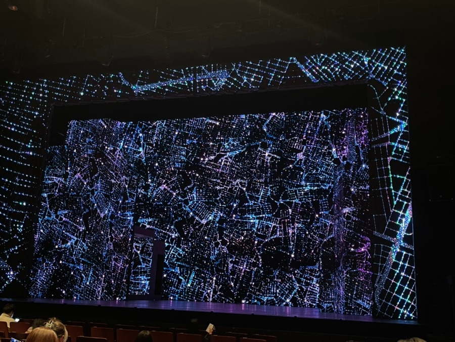 객석에 앉으니 내 앞에 황홀경이 펼쳐졌다. 이게 무슨 의미를 담은 세트일까 궁금했었는데, 밤비행기에서 뉴욕을 내려다보는 모습을 표현해 낸 거라 했다. 그간 봐왔던 하늘 아래 야간샷들이 내 눈앞에 펼쳐졌다. 그것들도 이처럼 아름다웠었지. 세트부터 마음에 쏙 들어버렸다. 무대가 암전 되며 핑크빛과 하늘색 조명이 어우러진 배경에서 정선아가 나왔다. "안녕, 나야"라는 대사로 이 극은 시작된다.